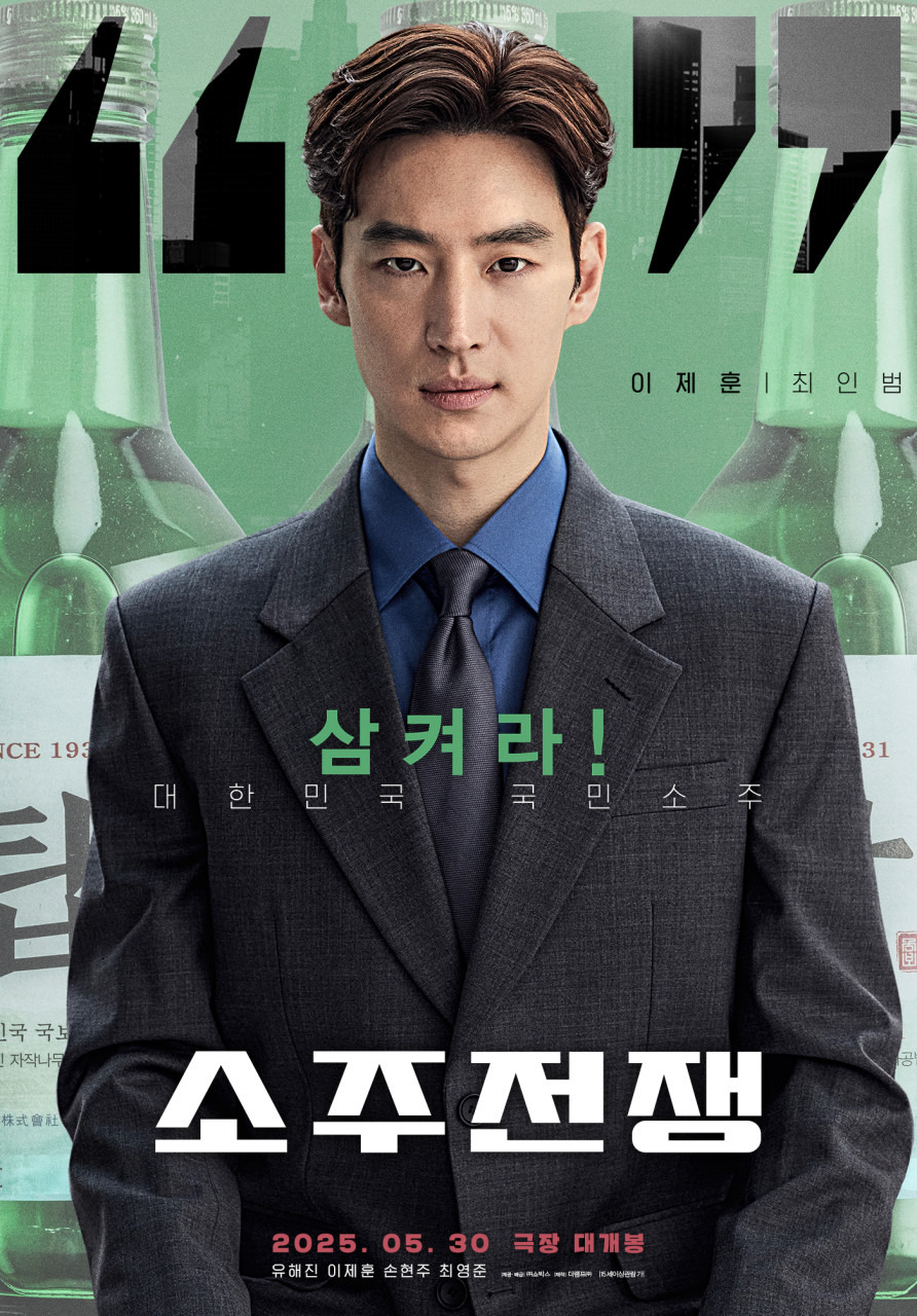 2025년 5월 30일에 개봉 예정인 한국 영화 <소주전쟁>입니다. 영화 소주전쟁은 TMF 외환위기를 눈여겨보던 글로벌 투자사 솔퀸의 직원 인범이, 국보 소주 매각을 위해 회사에 접근하게 되면서 벌어지는 이야기를 담은 영화라고 하는데요. 국보 소주가 자신의 인생이나 마찬가지인 국보그룹의 재무이사 종록은 회사를 살리기 위해 인범에게 의지를 하게 되고, 서로 다른 목적의 두 사람이 소주 하나로 가까워지는 내용이라고 하네요!