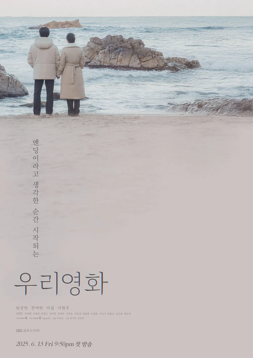 2025년 6월 13일부터 <귀궁>의 후속으로 방영 예정인 SBS 금토 드라마 <우리 영화>입니다. 드라마 우리 영화는 다음이 없는 영화감독 제하와, 오늘이 마지막인 배우 다음의 내일로 미룰 수 없는 사랑 이야기를 담았다고 하는데요. 남궁민, 전여빈 배우가 출연하는 것으로 알려져 있으며 총 12부작입니다.