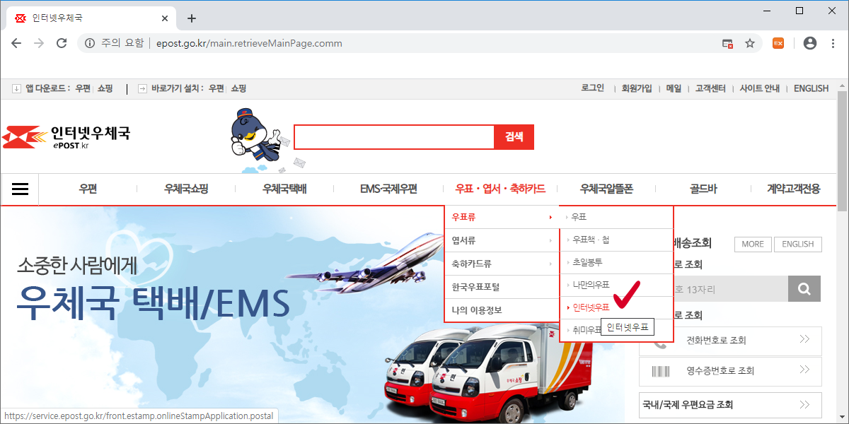 하지만 이제는 우체국을 방문하거나 우표 파는곳을 찾지 않아도, 인터넷과 프린트만 있다면