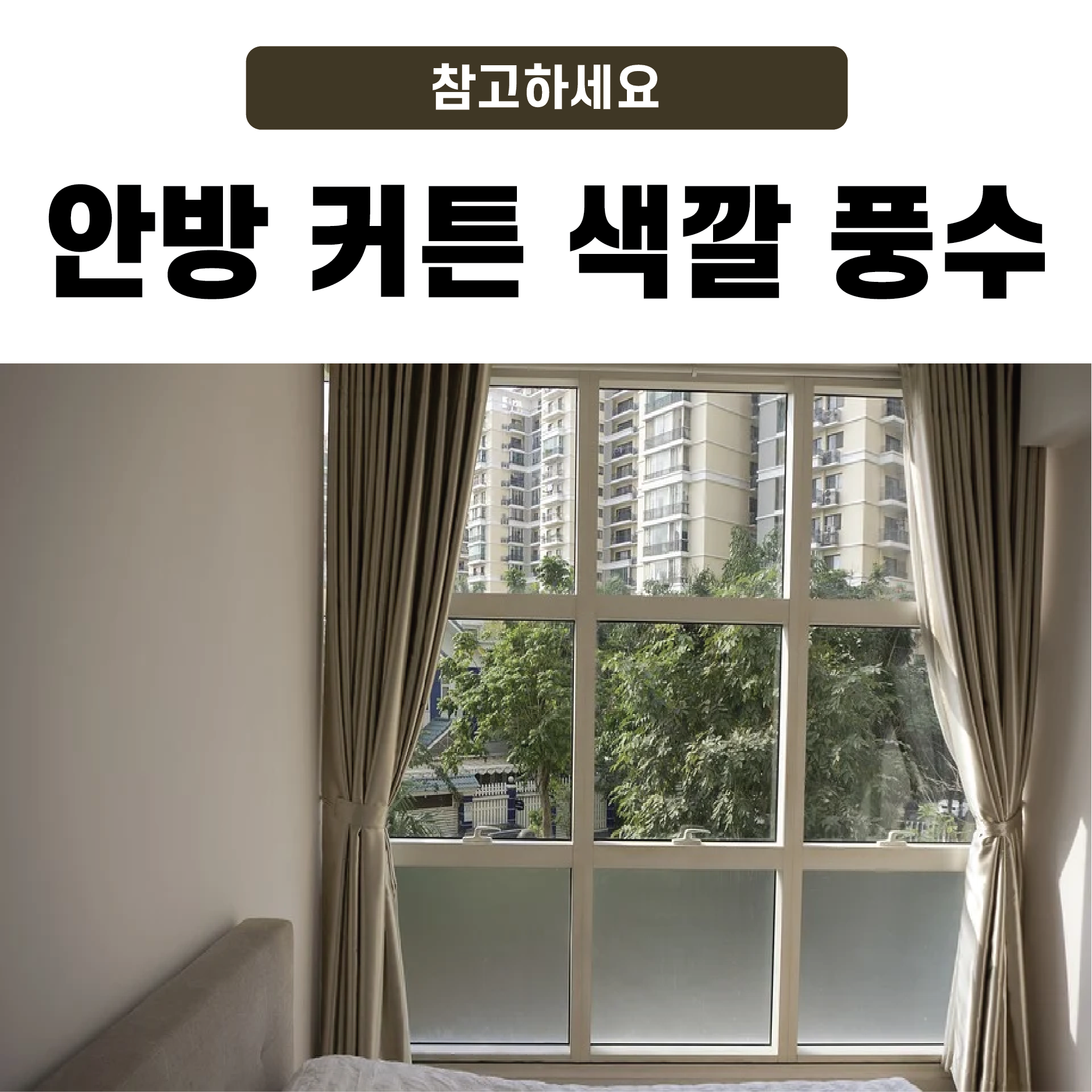 개인적으로 저는 색이 들어간 커튼보다, 흰색이나 베이지색 계열의 커튼을 선호하는 편인데요. 안방 커튼 색깔 풍수 인테리어 상으로도 밝고 깨끗한 인상을 주는 커튼들이 좋다고 합니다. 또한, 너무 두껍거나 화려한 커튼들은 좋지 않다고 하니 피해 주세요 :) 사선 무늬, 기하학적인 무늬가 들어간 커튼도 역시 추천드리지 않습니다.