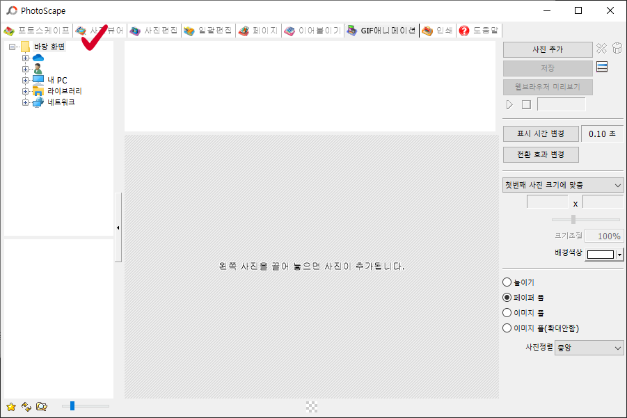 먼저, 포토스케이프를 다운로드하여줍니다. 다운로드한 후 해당 프로그램을 실행시켜주시면 위와 같은 화면이 나타나는데, 해당 화면에서 오른쪽 하단에 있는 GIF 애니메이션 메뉴를 클릭해주시면 됩니다.