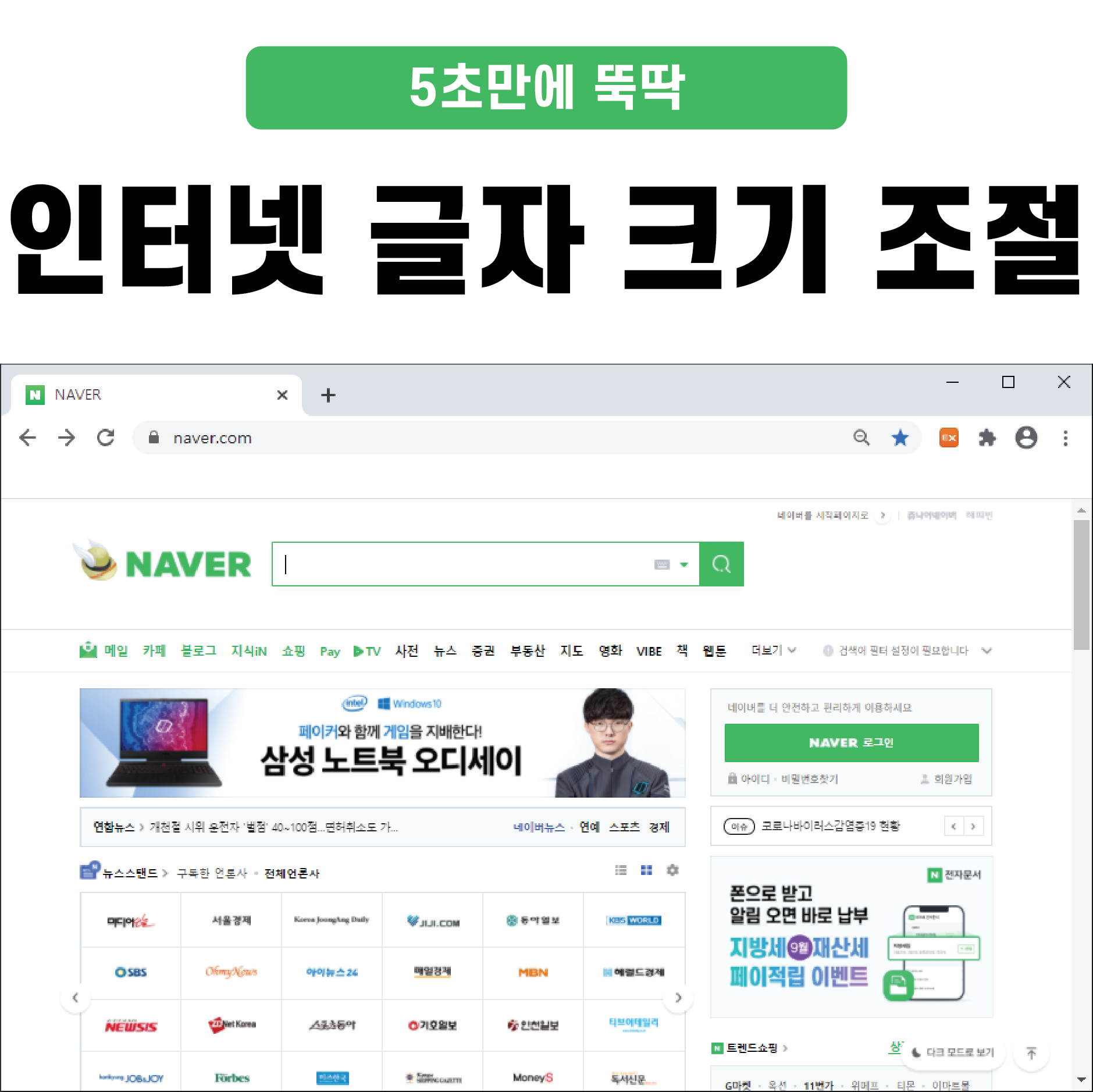 또는 따로 인터넷 글자크기 조절을 건드리지 않았음에도, 시력이나 상황에 따라 인터넷 글자크기 조절을 필요로 하는 순간들이 생기곤 합니다. 지금부터 그러한 상황들에서 사용하기 좋은 인터넷 글자크기 조절 방법을 알려드리도록 하겠습니다.