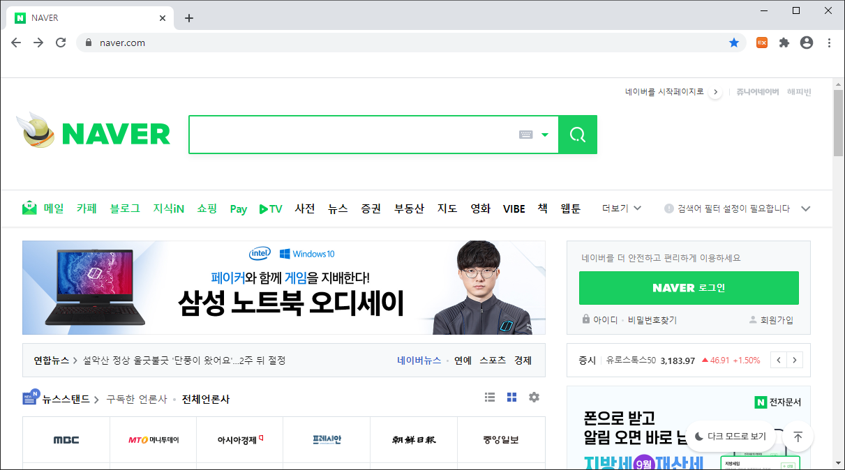 저는 크롬 브라우저를 실행시켜보았습니다. 보통 인터넷 창을 실행시켰을 때의 모습입니다. 글자와 그림, 사진들 모두 평소 많이 보던 익숙한 사이즈인 것을 확인할 수 있었습니다.