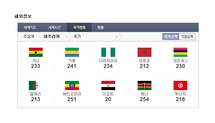 주요국 위주로 국가번호를 확인할 수 있을뿐만 아니라 원하는 지역만 바로 검색도 가능하니 편하신 방법을 이용해주시면 되겠습니다. 지금까지 국제전화 국가번호 검색 방법이었습니다.