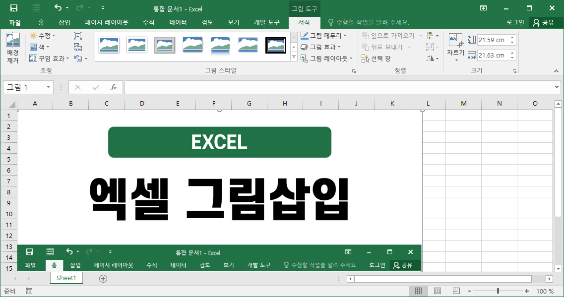 위 방법을 엑셀 그림삽입을 해보았습니다. 해당 포스팅의 썸네일 이미지입니다.