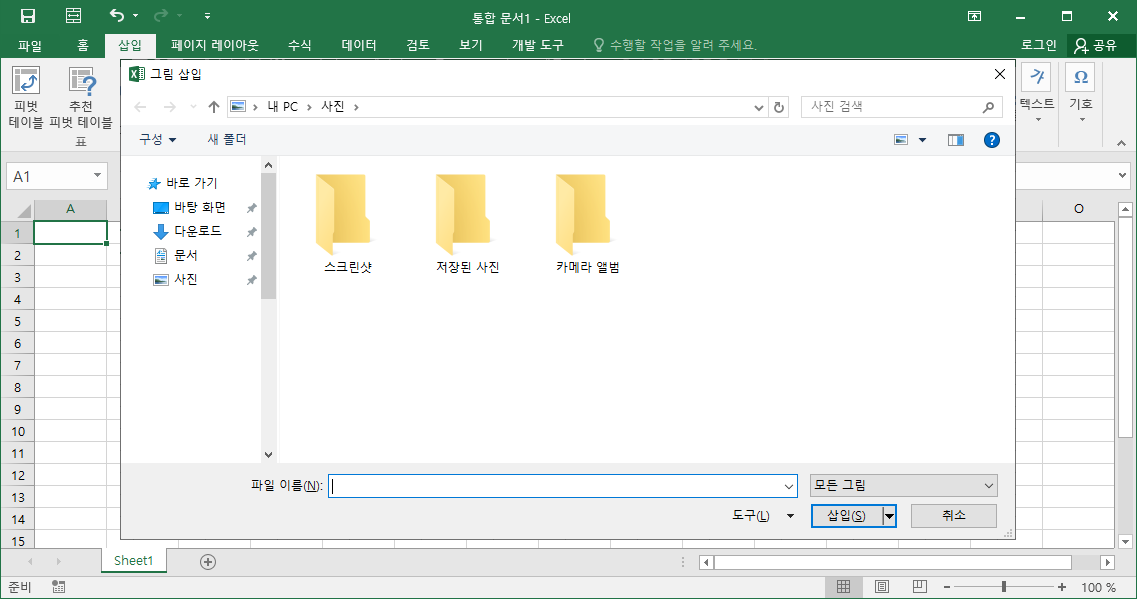 사진 아이콘을 클릭해주시면 그림 삽입 창이 나타납니다. 그림 삽입 창을 통해 원하는 이미지를 불러와주시기 바랍니다. 해당 창을 통해 이미지가 있는 곳으로 이동해주신 후, 불러오고자 하는 이미지를 클릭 후 하단의 삽입 버튼을 클릭해주시거나 해당 이미지를 더블클릭해주시면 됩니다.