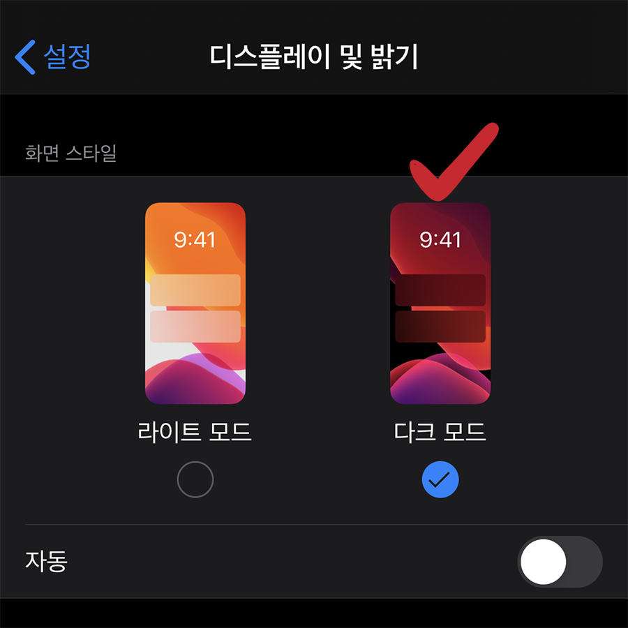 아이폰의 화면 스타일에는 라이트 모드와 다크 모드 두 가지가 있는데요.