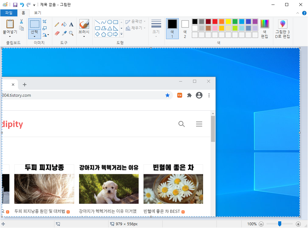 마우스 클릭과 드래그를 이용하여 지정을 해주시면 위와 같이 원하는 영역만 캡처됩니다.
