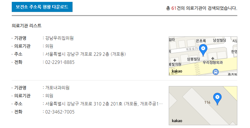 검색을 해주시면 위와 같이 검색 결과가 나타납니다. 해당 검색 결과를 보고 의료기관명과 주소를 확인해줍니다. 그리고 자신이 방문하고자 할 때는 아래의 전화번호로 전화하여 보건소 토요일근무 시간을 확인하면 되겠습니다. 만약 아래 홈페이지 버튼이 나와있는 경우에는 전화를 하지 않고도 해당 홈페이지 방문을 통해 보건소 토요일근무 시간 확인이 가능할 수 있습니다. 이상 보건소 토요일근무 시간 확인하는 방법이었습니다.