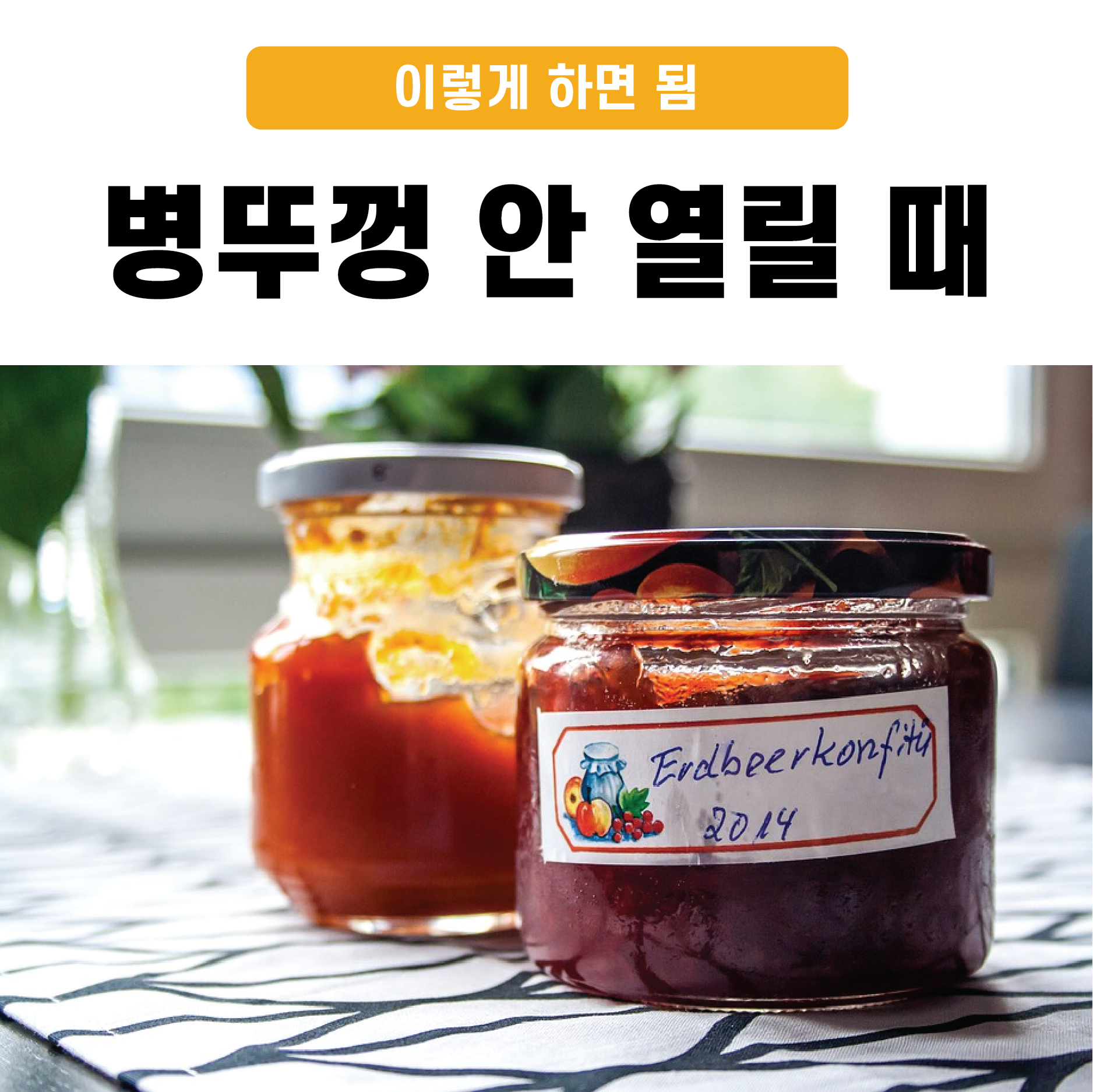 식빵에 잼을 발라먹으려고 하는데 병뚜껑이 열리지 않는다면 참으로 난감할 수밖에 없습니다. 보통은 힘을 좀 더 주면 열리게 되어있지만, 아무리 힘을 써도 열리지 않는다면 다른 방법을 고민해볼 수 있습니다. 지금부터 병뚜껑 안열릴때 해결할 수 있는 방법 몇 가지를 알려드리도록 하겠습니다.