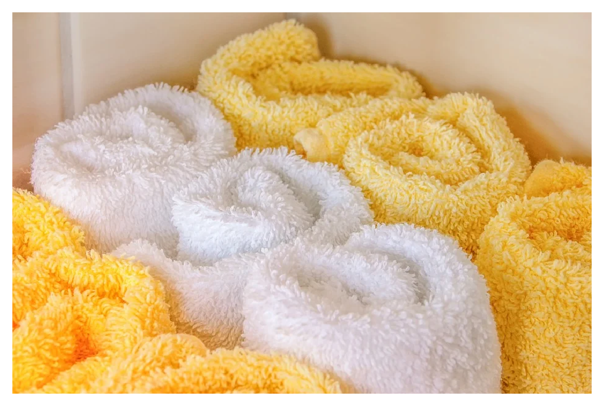 보통 세탁기를 돌리실 때 세탁세제 외에 섬유유연제도 사용하실 텐데, 수건에는 섬유유연제를 사용하지 않는 것이 좋습니다. 섬유유연제는 섬유를 코팅하는 효과가 있어 수건의 기능을 떨어트리기 때문입니다. 수건이 아니더라도 섬유유연제의 과다한 사용은 좋지 않습니다.