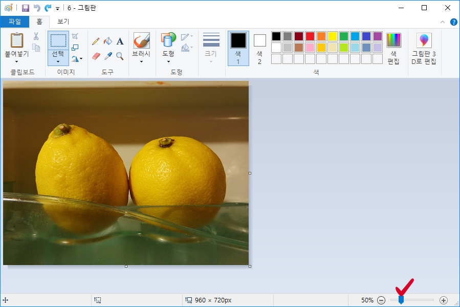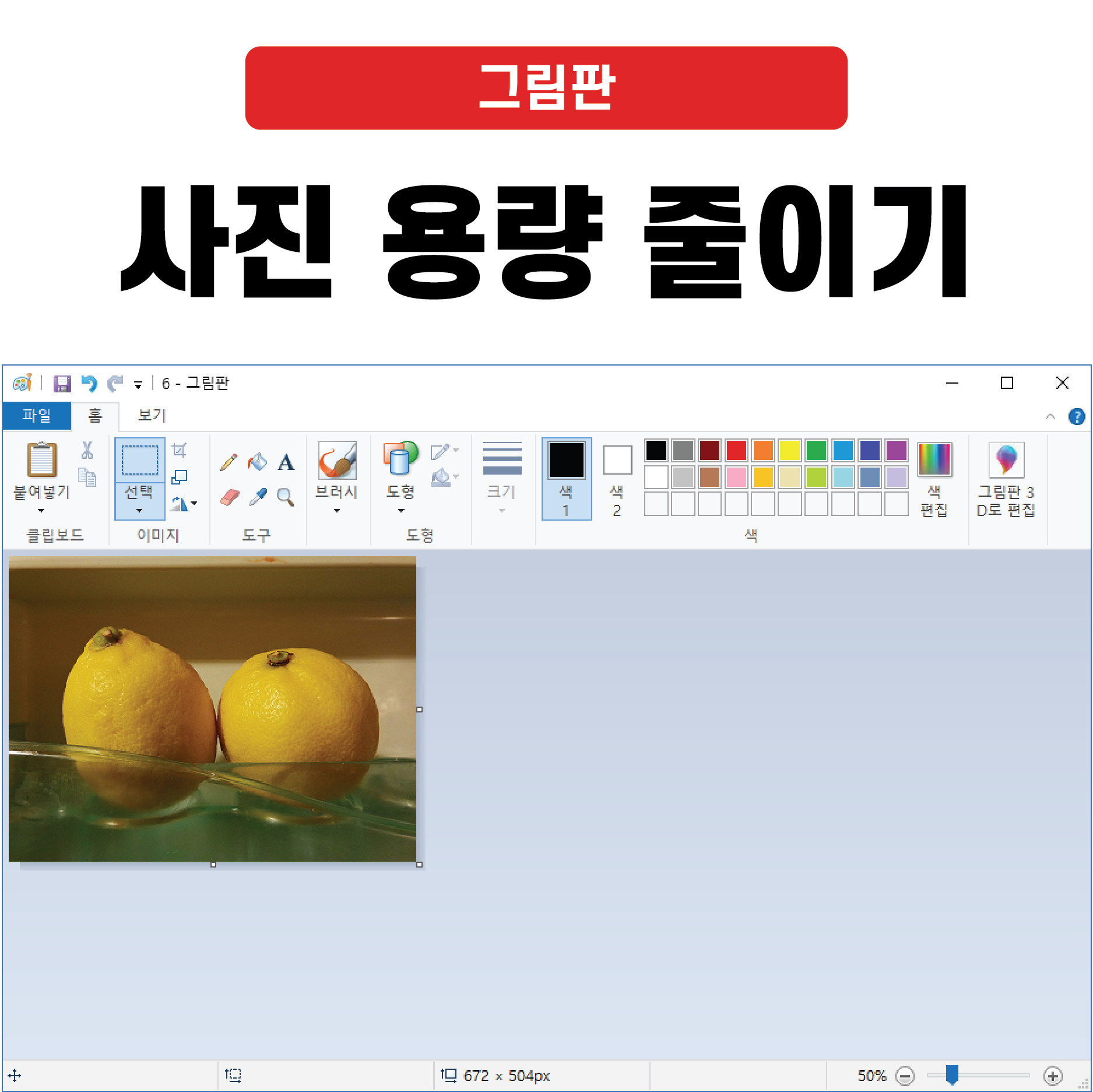 이미지 크기 변경을 마쳐주시면 그림판 사진 용량 줄이기 작업도 끝이 납니다. 이제 해당 이미지를 다른 이름으로 저장하신 후 사용하시면 됩니다.
