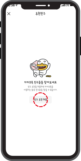 친구 추천 목록이 뜨지 않았던 이유는 제가 친구 추천을 비허용으로 해놨기 때문입니다. 그렇다면 친구 추천 허용을 눌러보도록 하겠습니다.