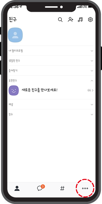 메뉴 아이콘을 눌러주신 뒤에는 친구 메뉴로 접속해줍니다.