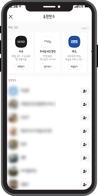 친구 추천을 허용으로 설정하니 여러 명의 추천 친구가 뜨는 것을 확인할 수 있습니다.