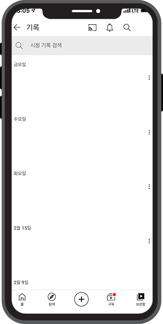 자신이 시청했던 동영상들을 날짜별로 확인할 수 있어요.