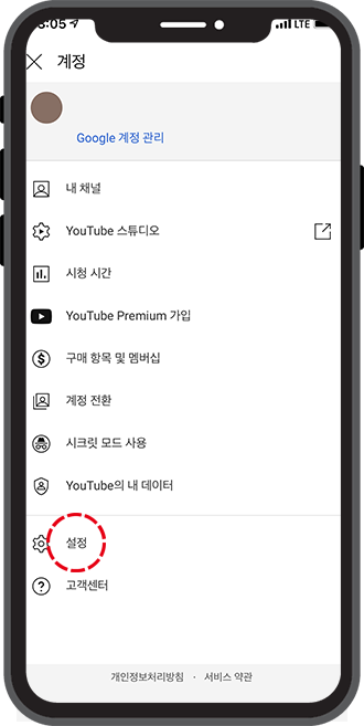자신의 계정 정보와 함께 유튜브 시청 시간, 구매 항목 및 멤버십 등을 확인할 수 있는데요. 유튜브 검색기록 삭제와 시청기록 삭제를 위해서는 하단의 설정을 클릭해주셔야 합니다.