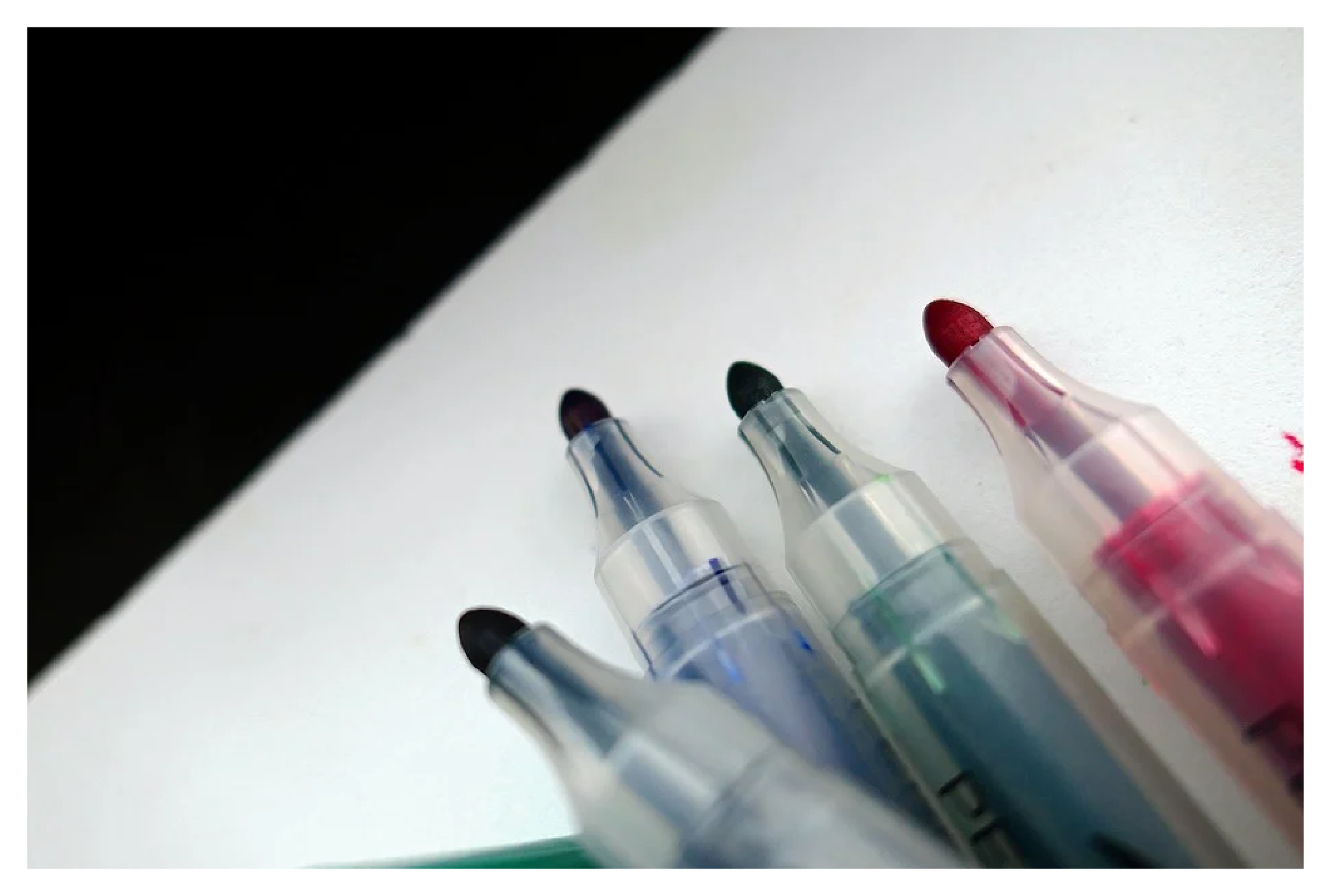 유성매직 위에 수성 매직을 덧바르는 것도 유성매직 지우는법입니다. 유성매직의 성분과 수성 매직의 성분이 섞이면서 유성매직 성분이 중화되는 효과가 있거든요. 다만 수성 매직 심지에 유성매직이 묻을 수 있으니, 사용하지 않는 수성 매직을 사용해주시기 바랄게요. 수성 매직을 충분히 덧칠했다면 보드마카 지우개를 이용하여 지워줍니다.