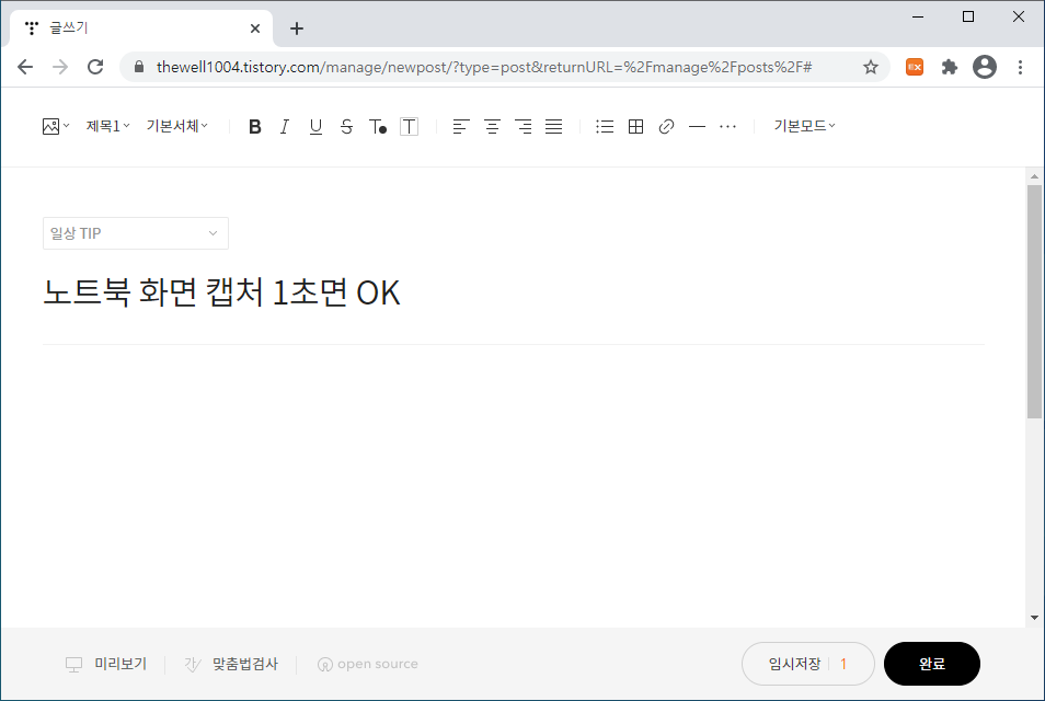 이번에는 Alt 키와 Prt Sc Sys Rq 키를 동시에 눌러 노트북 화면 캡처를 한 모습입니다. 배경화면은 캡처되지 않고, 실행하고 이는 창 하나만 캡처되었습니다. 이렇게 캡처를 하고 싶은 대상에 따라 노트북 화면 캡처 방법을 다르게 해 주시면 됩니다.