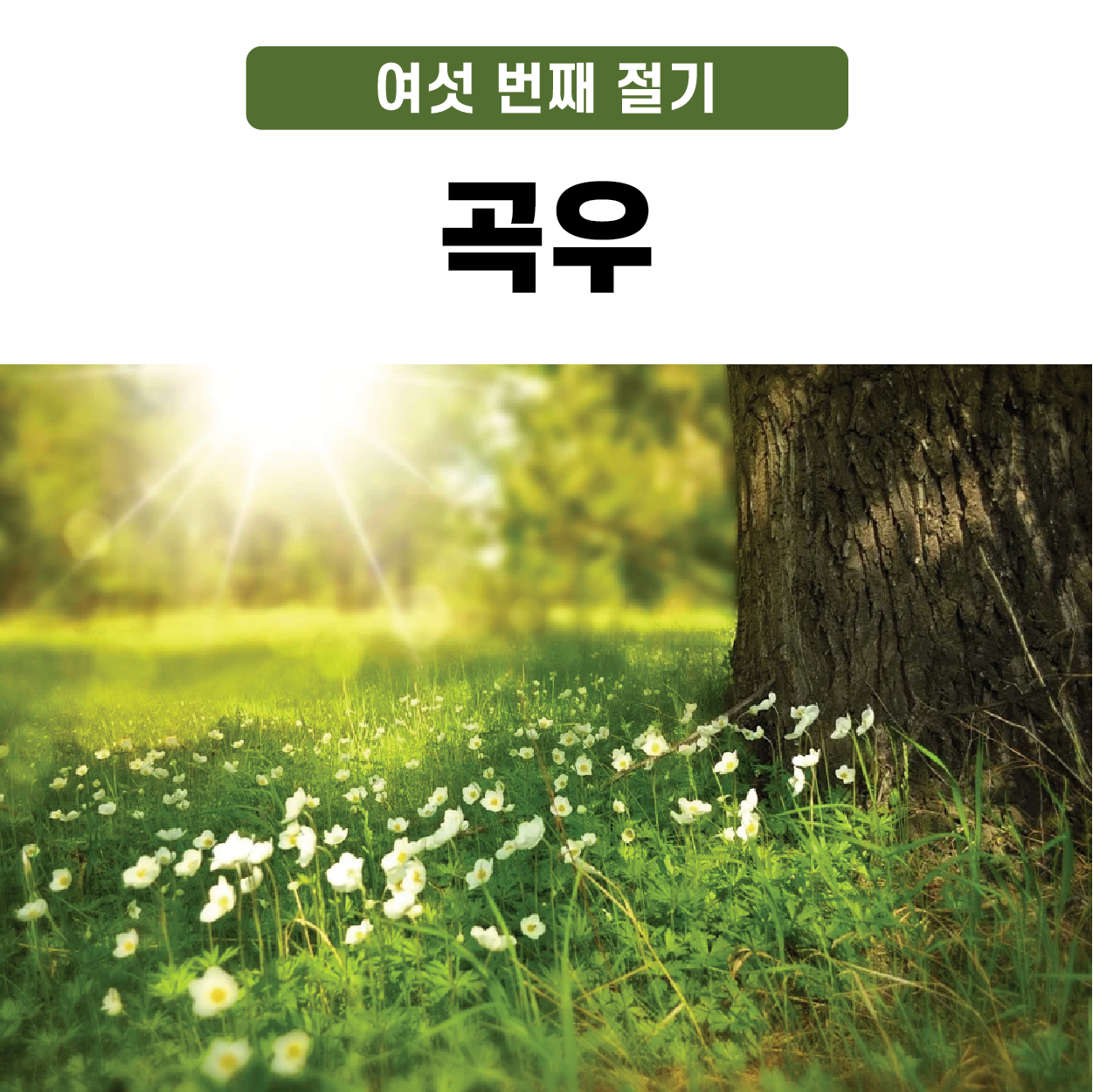 태양의 황도상 위치에 따라 계절적 구분을 하기 위해 만든 것으로, 황도에서 춘분점을 기점으로 15˚ 간격으로 점을 찍어 총 24개의 절기로 나타낸 것을 24절기라고 합니다. 24절기는 봄, 여름, 가을, 겨울로 크게 나눠지며 각 계절별로 6개의 절기가 있습니다. 그리고 봄의 절기이면서 24절기 중 여섯 번째 절기를 곡우라고 합니다. 곡우는 보통 4월 20일 또는 4월 21일 경입니다.