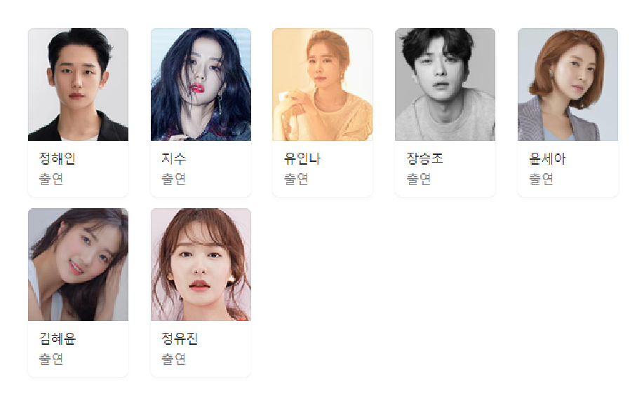 현재 밝혀진 바에 의하면 드라마 설강화에는 정해인, 지수, 유인나, 장승조, 윤세아, 김혜윤, 정유진 등이 출연 예정입니다.