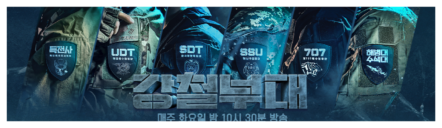 인기리에 방영 중인 화요 예능 강철부대입니다. 강철부대는 최정예 특수부대 출신 예비역들이 팀을 이뤄 각 부대의 명예를 걸고 싸우는 밀리터리 서바이벌 프로그램인데요. 특수부대 출신 예비역들 외에도 김성주, 장동민, 김희철, 김동현, 츄, 최영재 등 여섯 명의 MC가 출연하여 프로그램의 재미를 더하고 있습니다.