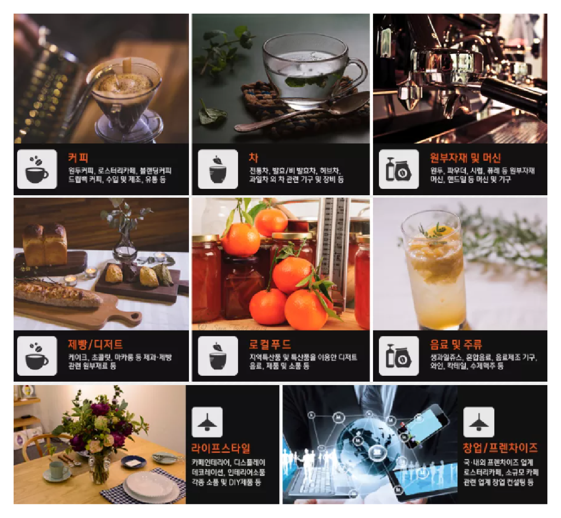 '2021 제주 카페스타'에는 최신 트렌드의 카페 및 차 베이커리, 디저트 등의 부자재, 머신 및 장비 외에 다양한 라이프스타일을 충족시켜 줄 인테리어 소품과 카페 창업을 위한 컨설팅 등 다양한 품목들이 준비되어 있습니다. 카페 문화와 라이프 스타일의 모든 것을 한 곳에서 확인하고 싶으시다면 '2021 제주 카페스타' 방문을 추천드립니다.