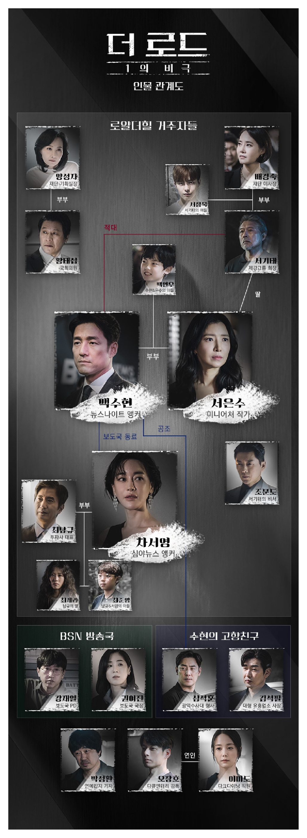 <더 로드 : 1의 비극>에는 윤세아, 김혜은, 지진희 배우 외에도 천호진, 안내상, 김성수, 백지원, 조달환, 김뢰하, 강경헌, 하민 배우 등이 출연할 예정이에요. 네티즌들 사이에서 천호진 님이 드라마에 점퍼를 입고 나오면, 눈물 없이는 볼 수 없는 이야기가 전개된다는 말이 있는데요. <더 로드 : 1의 비극>에서는 천호진님이 다소 독선적이고 위압적인 이미지를 선보일 예정이라 그런지 신선한 전개가 펼쳐질 것 같다는 생각이 듭니다!