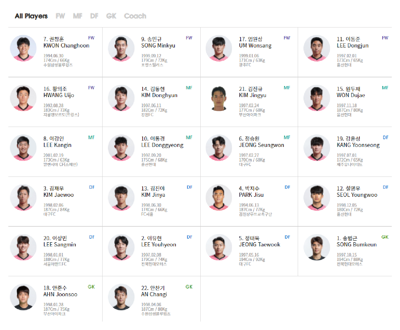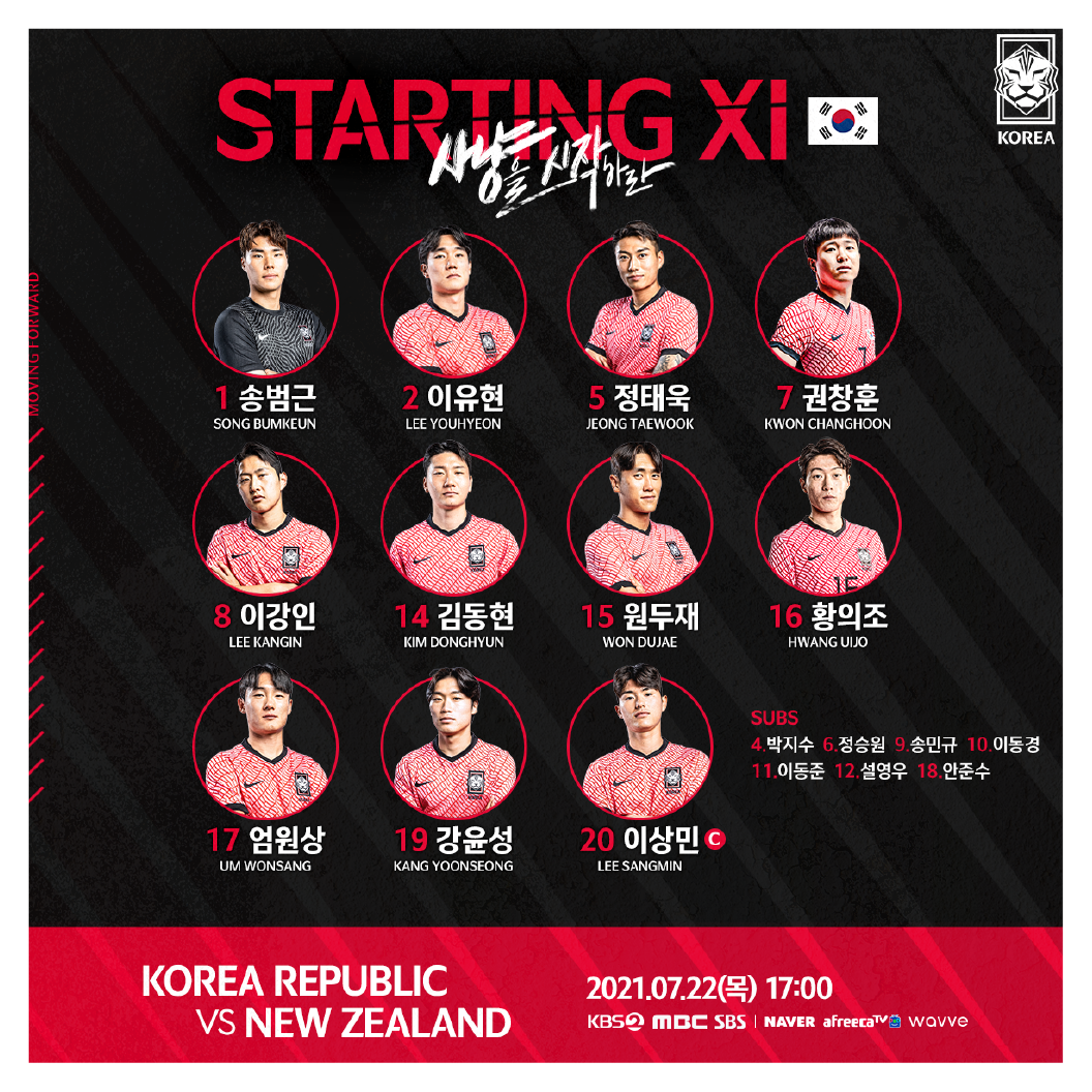 | 7월 22일 목요일 17시 | 대한민국 (패) | 0 | 1 | 뉴질랜드 |