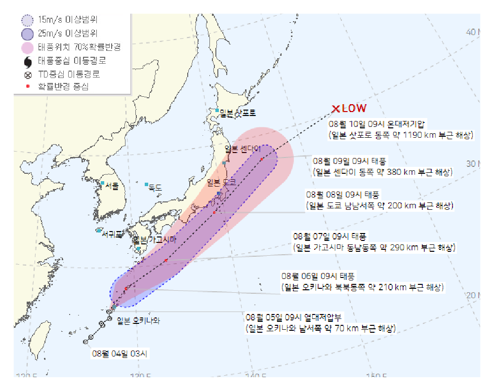 · 08월 10일 09시 온대저기압 - 일본 삿포로 동쪽 약 1190km 부근 해상