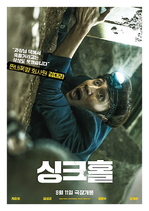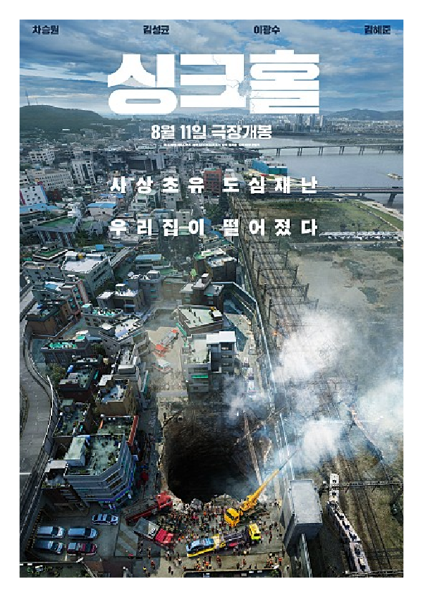 지난 8월 11일, 영화 <싱크홀>이 개봉했습니다. 영화 싱크홀은 싱크홀로 인해 빌라가 지하 500m 아래로 가라앉게 되면서 벌어지는 이야기를 담은 영화인데요. 차승원, 김성균, 이광수, 김혜준, 남다름 배우가 등장하며 전체적으로는 코미디 영화의 성격을 띠고 있습니다.