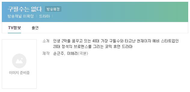 드라마 <구필수는 없다>의 정확한 방영정보는 아직 미확정입니다. 방송 채널이 정해지지 않았으니, 당연히 언제 방송이 될지도 아직은 미지수라는 점. 지난 5월에 알려진 정보에 따르면 드라마 <구필수는 없다>는 7월부터 촬영을 시작할 계획이었다고 해요.