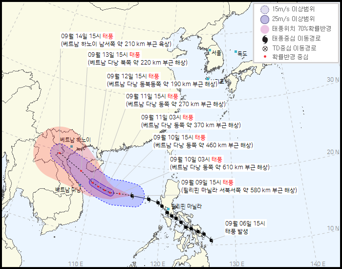09월 09일 15시 태풍 - 필리핀 마닐라 동북동쪽 약 670km 부근 해상