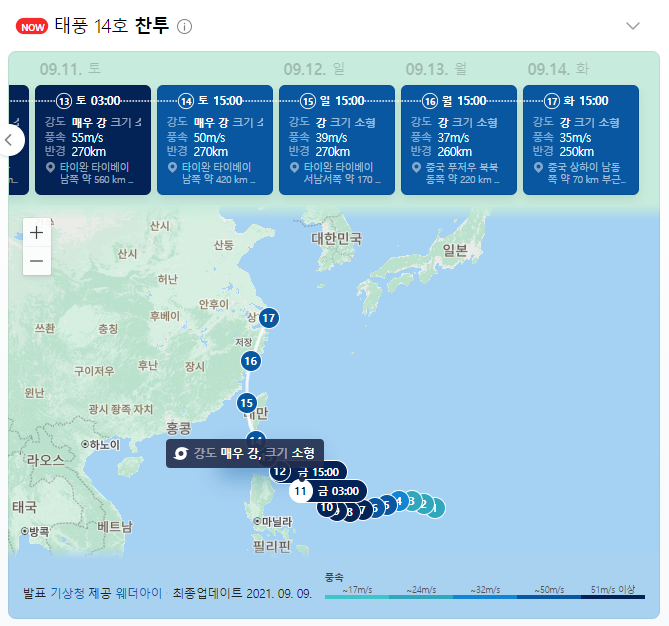 09월 11일 03시 태풍 - 타이완 타이베이 남쪽 약 560km 부근 해상