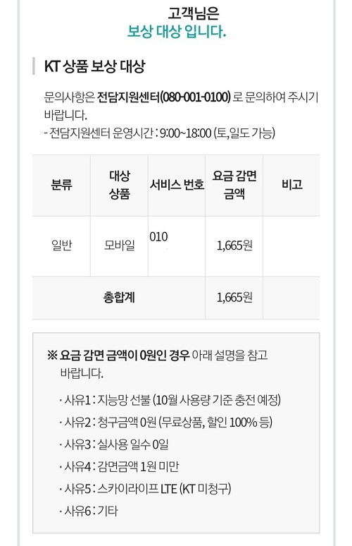 - 해당 고객도 동일하게 요금 감면 처리될 예정