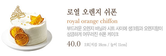 생크림이 어우러지는 촉촉한 쉬폰 케이크입니다. 금액은 40,000원이에요.