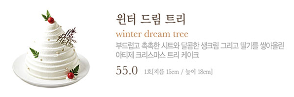 먼저 윈터 드림 트리 케이크는 부드럽고 촉촉한 시트와 달콤한 생크림