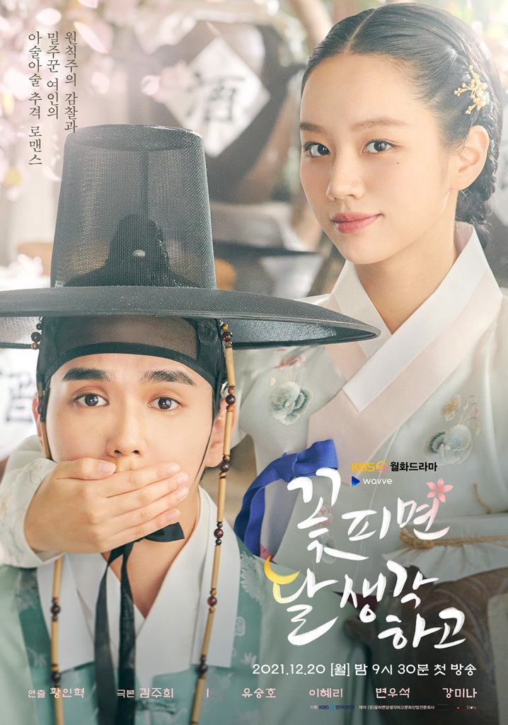 지난 12월 20일 첫 방영을 시작한 KBS2 16부작 드라마 <꽃 피면 달 생각하고>입니다. 꽃 피면 달 생각하고는 역사상 가장 강력한 금주령의 시대, 밀주꾼을 단속하는 원칙주의 감찰과 술을 빚어 인생을 바꿔보려는 밀주꾼 여인의 아술아술 추격 로맨스를 담은 드라마인데요. 배우 유승호와 이혜리가 주연을 맡아 방영 전부터 많은 관심을 끌어모으기도 했습니다.