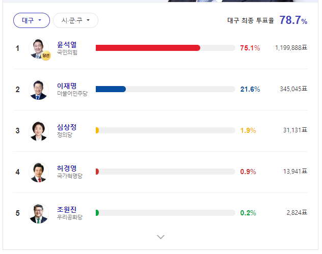 그럼 지금부터 제 20대 대통령 선거 지역별 투표 결과에 대해 살펴보도록 하겠습니다.