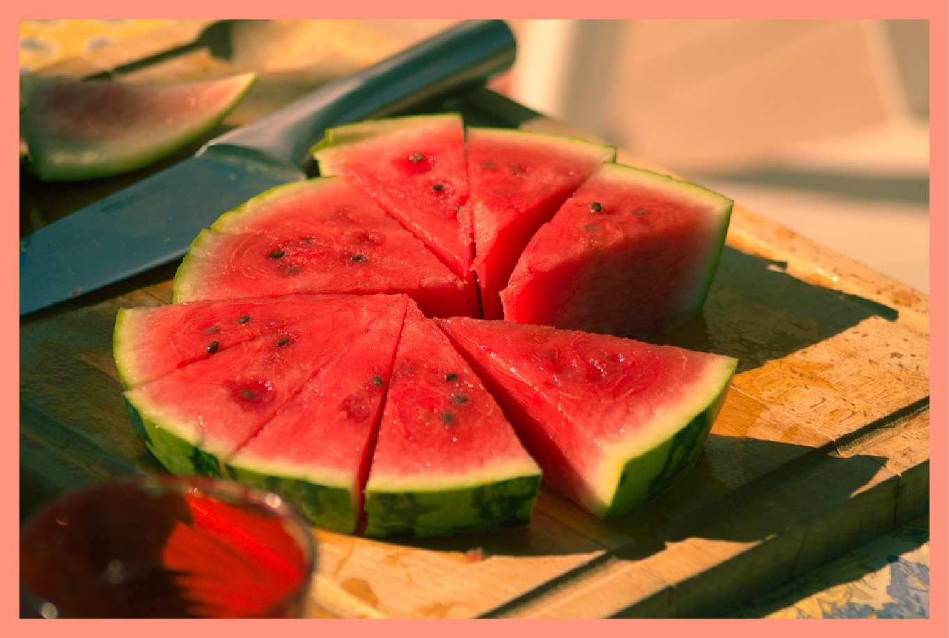 수박은 94% 정도가 수분으로 이루어져 있는 과일입니다. 찬 성질을 가지고 있기 때문에 몸의 열을 내리고 독소를 배출하는 효과가 있어요.