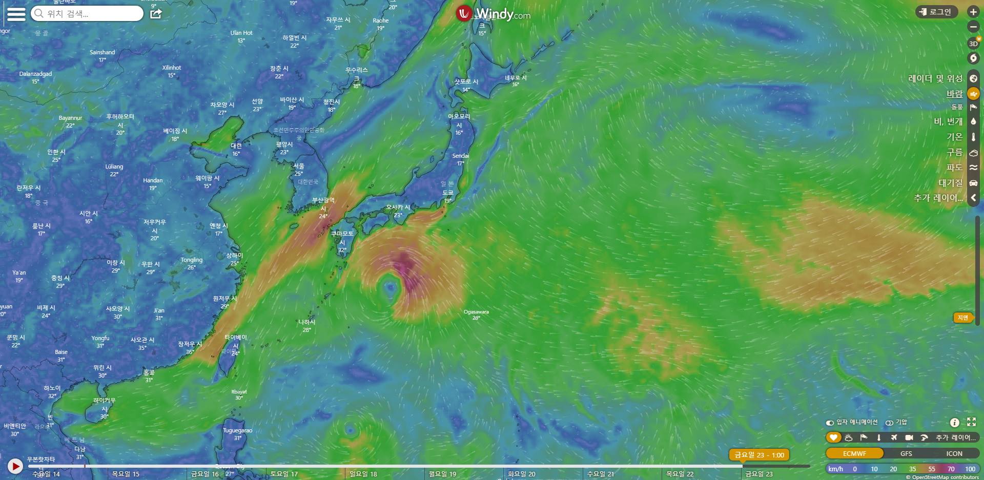 아직 확실한 것은 아닙니다만 15호 태풍 탈라스가 생성된 것으로 보이는데요. 현재 기준으로는 23일 금요일 오후 8시 예상 경로까지만 확인이 가능하기 때문에 이후 예상 경로는 시간이 지난 후 다시 확인해봐야 할 것 같습니다.