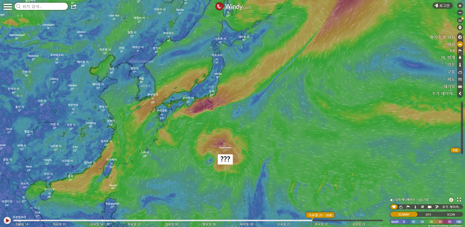 그런데, 계속해서 예상 경로를 보다가 새로운 것을 발견했습니다. 14호 태풍 난마돌이 지나간 이후 또 다른 태풍(?)으로 보이는 것이 포착되었는데요.