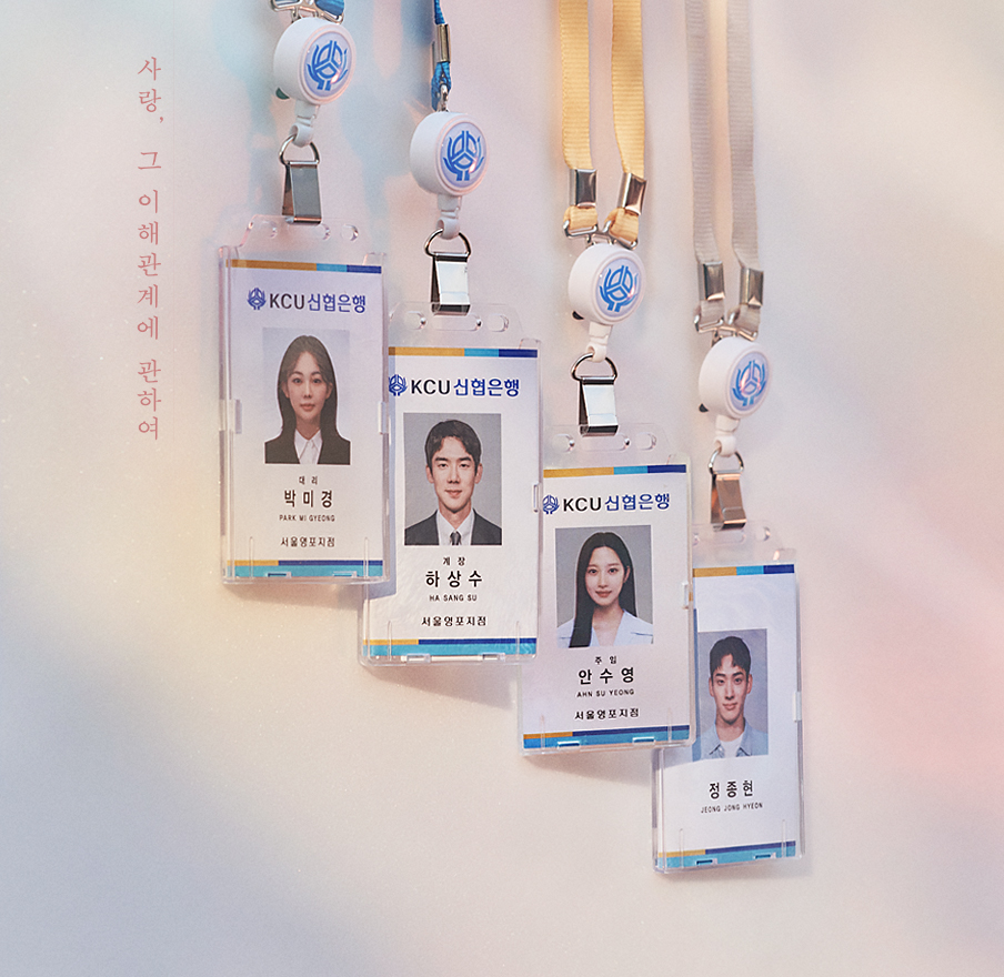 유연석, 문가영, 금새록, 정가람 배우가 주연 배우로 출연을 하는데요. 유연석 배우는 KCU은행 영포점 종합상담팀 3년 차 계장 역할을, 문가영 배우는 KCU은행 영포점 예금창구 4년 차 주임 역할을, 금새록 배우는 KCU은행 영포점 PB팀 대리 역할을, 정가람 배우는 KCU은행 경비원 겸 경찰공무원을 꿈꾸는 고시생 역할을 맡았다고 합니다.