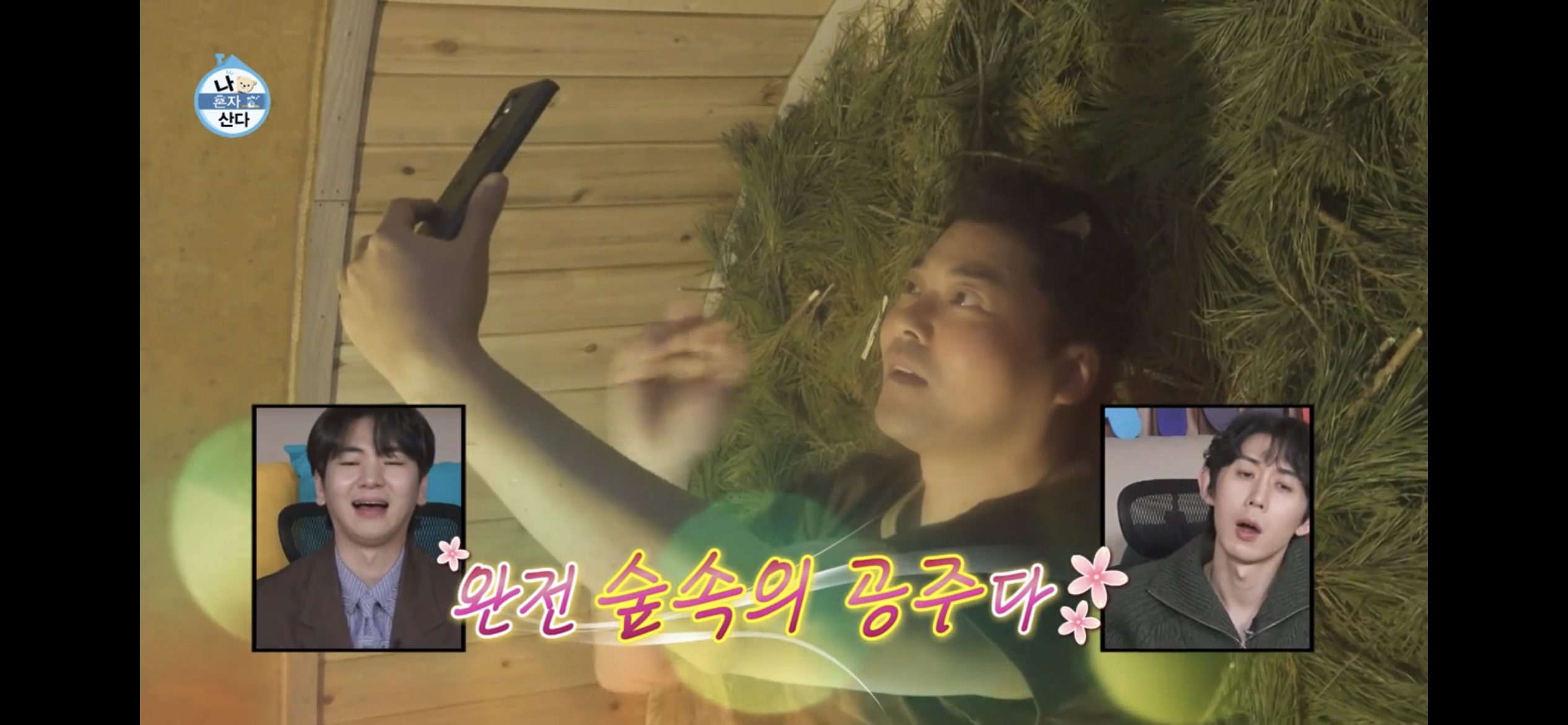 그리고 안내에 따라 도착한 곳은 바로 1인 찜질방. 전현무는 솔잎 찜질을 통해 몸 속의 독소를 빼기 위해 노력했고, 아이돌 그룹 아이브의 멤버 장원영을 따라하며 셀카를 건지기 위한 노력도 마다하지 않았습니다.