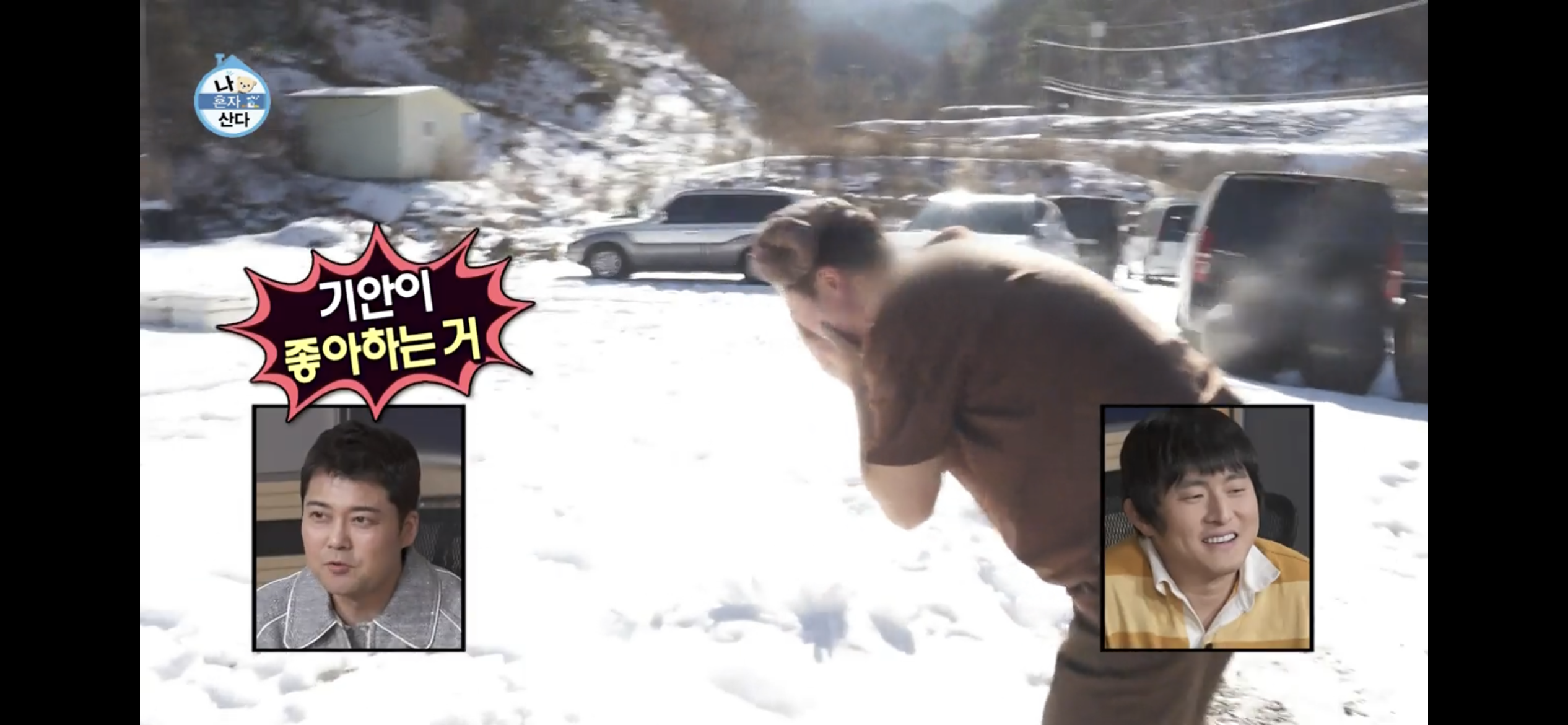 이후 열이 잔뜩 오르자 밖으로 뛰쳐나와 눈으로 세수를 하며 열을 식힌 전현무는 직접 준비한 도시락(?)을 선보였는데요.