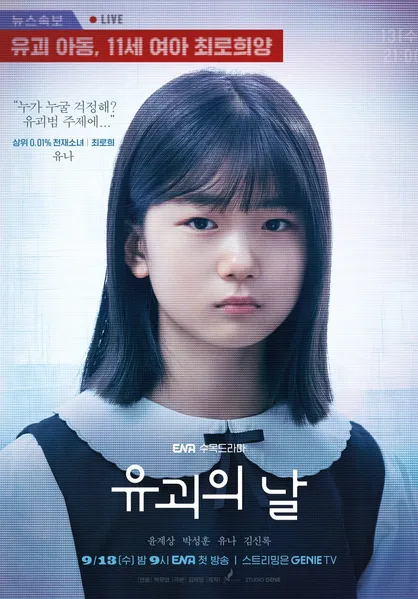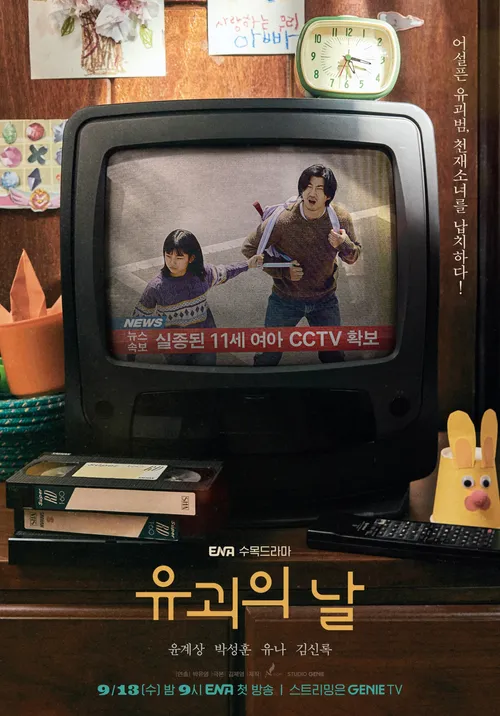 다가오는 9월 13일 첫 방영을 앞두고 있는 ENA 신작 드라마 <유괴의 날>입니다. 유괴의 날은 어설픈 유괴범과 11살 천재 소녀의 세상 특별한 공조를 담은 코믹 버디 스릴러라고 하는데요. 배우 윤계상이 유괴범을, 유나가 납치되는 11살 천재소녀 역을 맡았습니다.