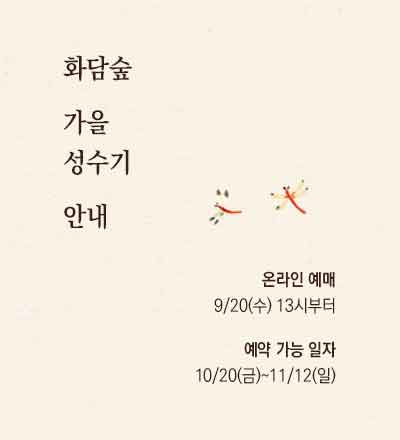 단풍을 절정으로 볼 수 있는 화담숲 가을 성수기는 10월 20일 금요일부터 11월 12일 일요일까지 입니다. 해당 시기에는 예매 경쟁이 치열하기 때문에 빠른 예약이 관건인데요. 오늘인 9월 20일 오후 1시, 이미 화담숲 가을 성수기 예약이 시작되었으니 서둘러주시기 바랍니다.