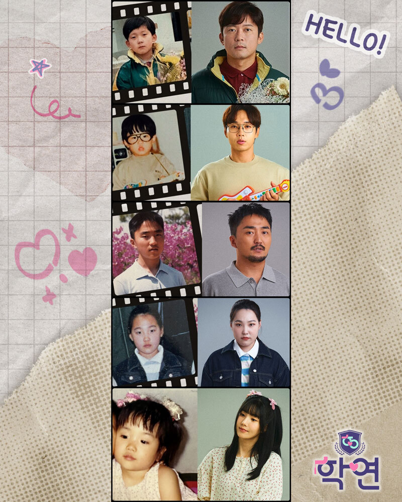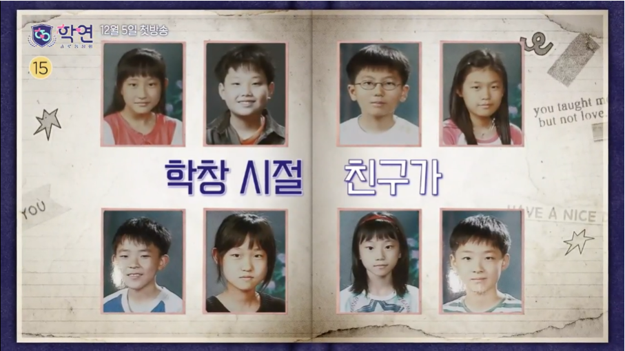 솔로동창회 MC(일명 학연주접단)는 정대호 아나운서와 가수 이석훈, 개그맨 유병재와 개그우먼 이은지, 그리고 가수 권은비가 맡았습니다. 솔로동창회 학연에서는 이 다섯 명의 과거 사진을 공개하며 다섯 MC의 학창 시절을 들춰보기도 했어요.